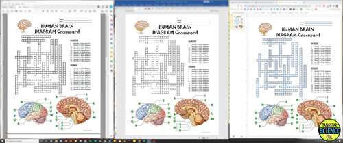 Brain Crossword With Diagram Editable Printable Distance Learning Options